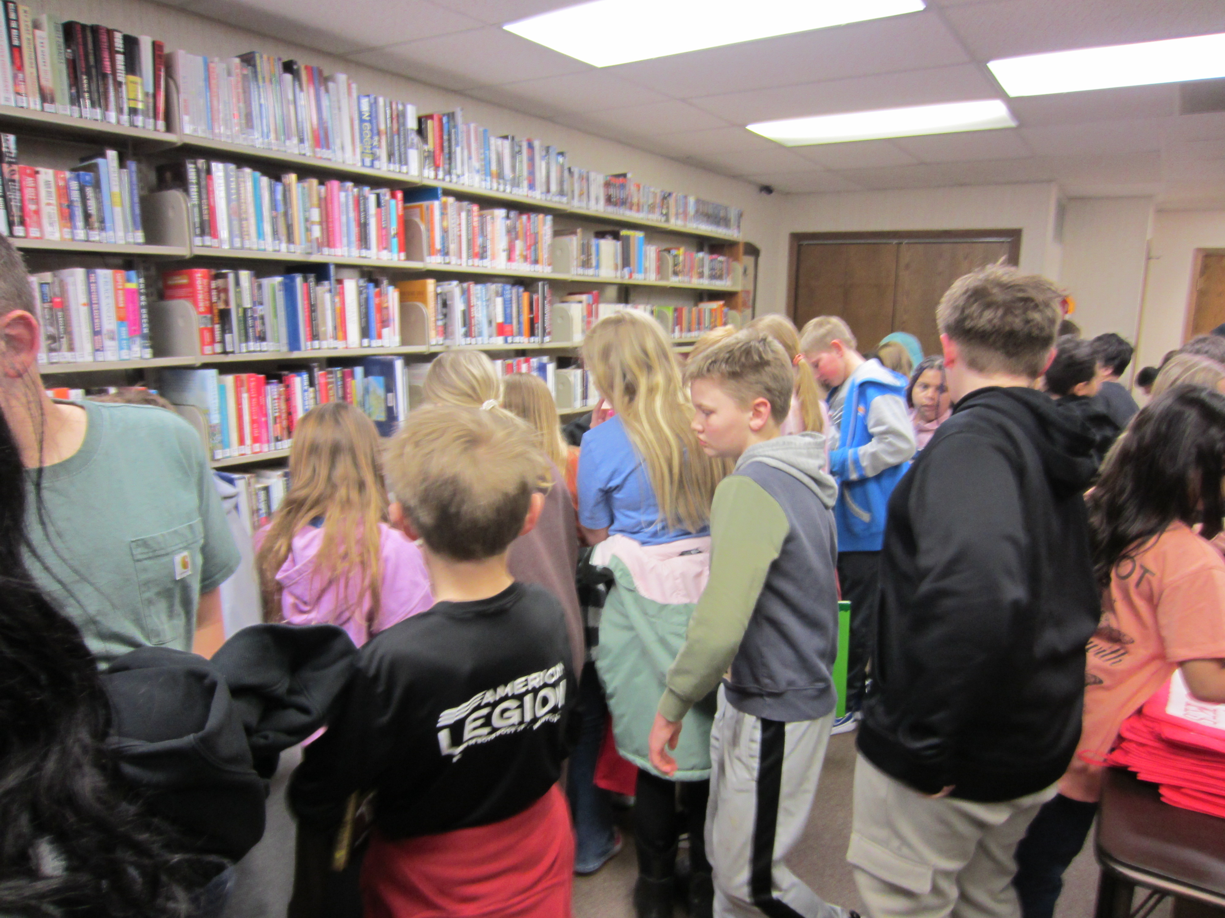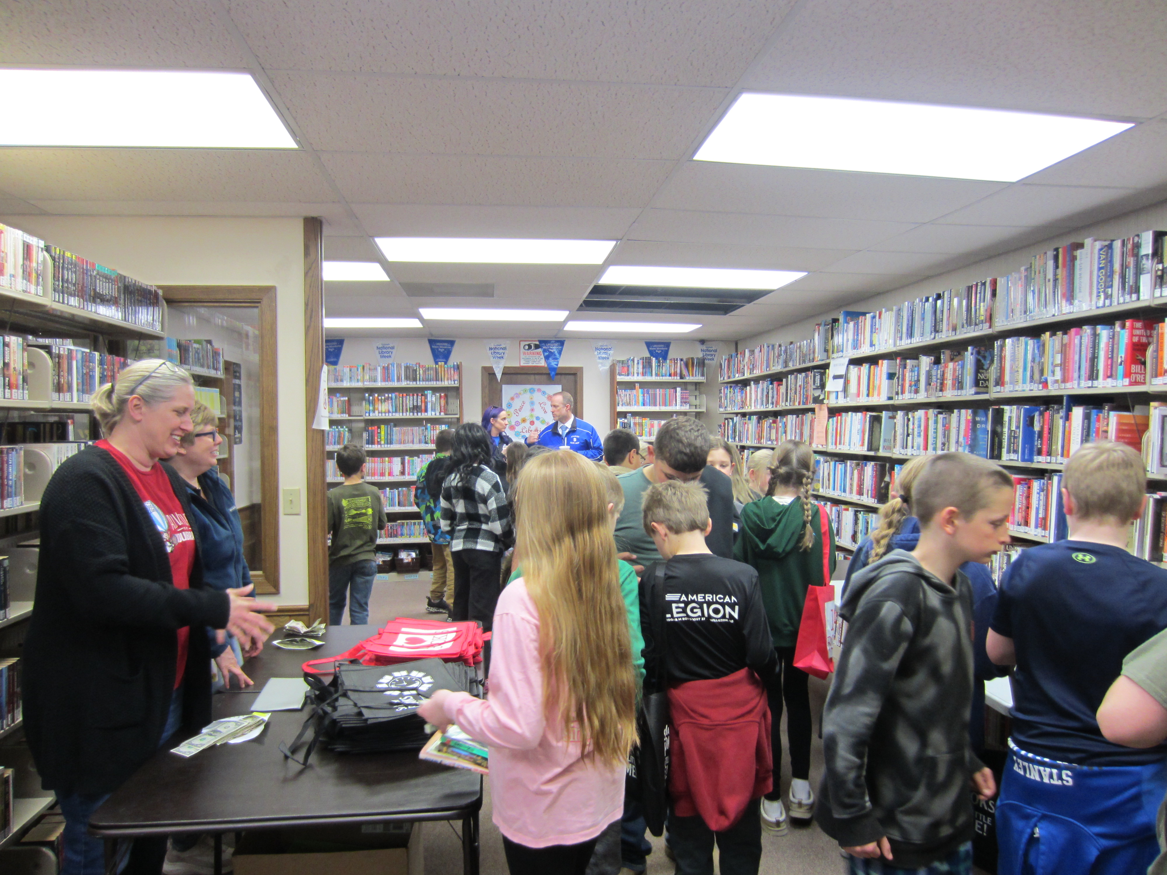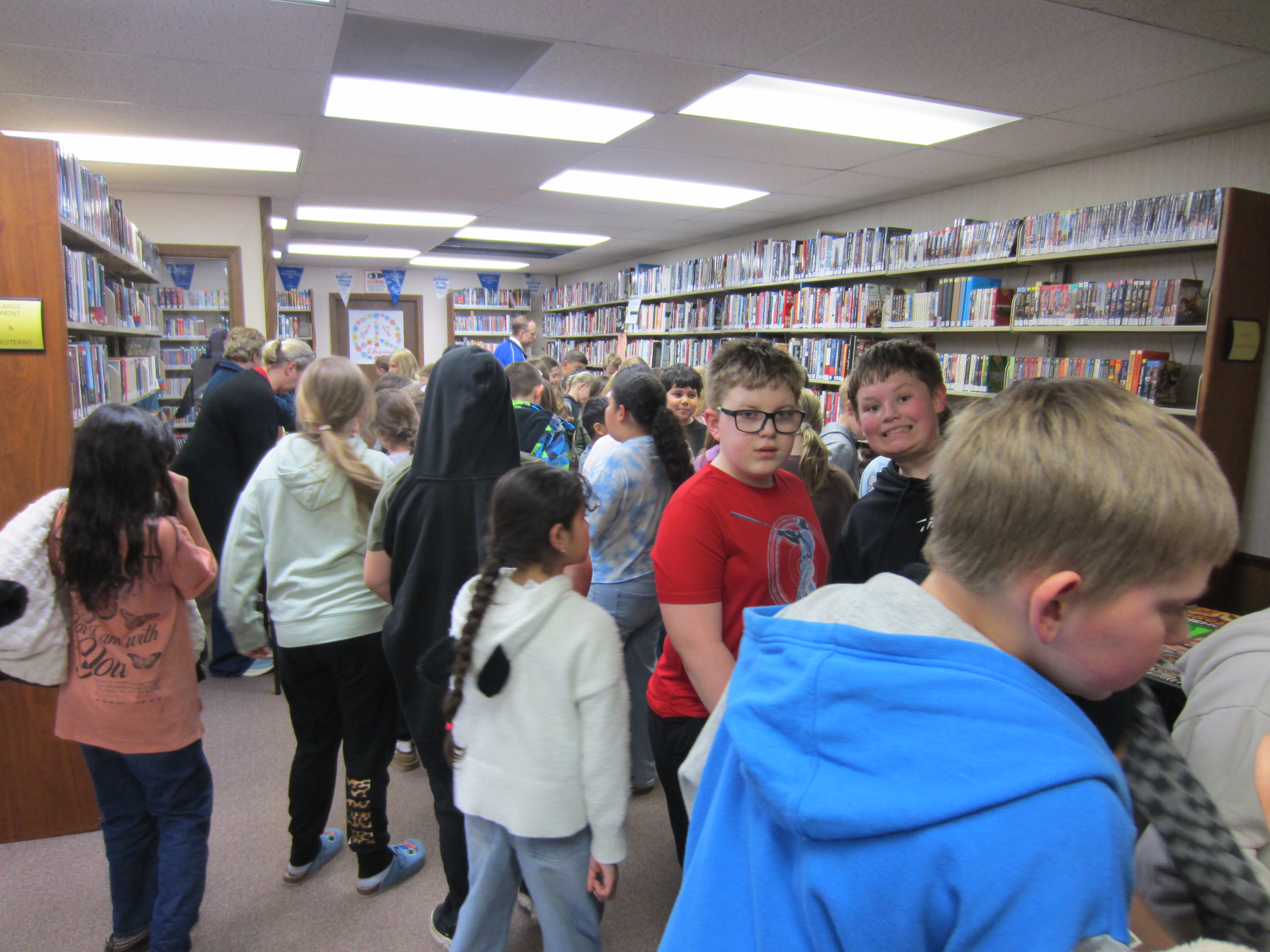 On Friday, April 10, the fourth-grade classes of Mrs. Drosdal, Mr. Hellman, and Mr. LaBar visited the Stanley Public Library in anticipation of National Library Week. The students were given a tour of the library, had an opportunity to purchase library book bags, had their choice of free books and DVDs, and registered for prizes. The students received library-themed souvenirs. The students were invited to return to the library for activities during National Library Week, April 20-24.