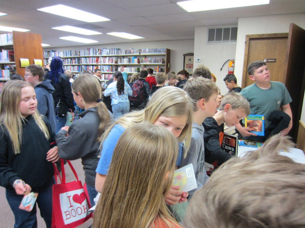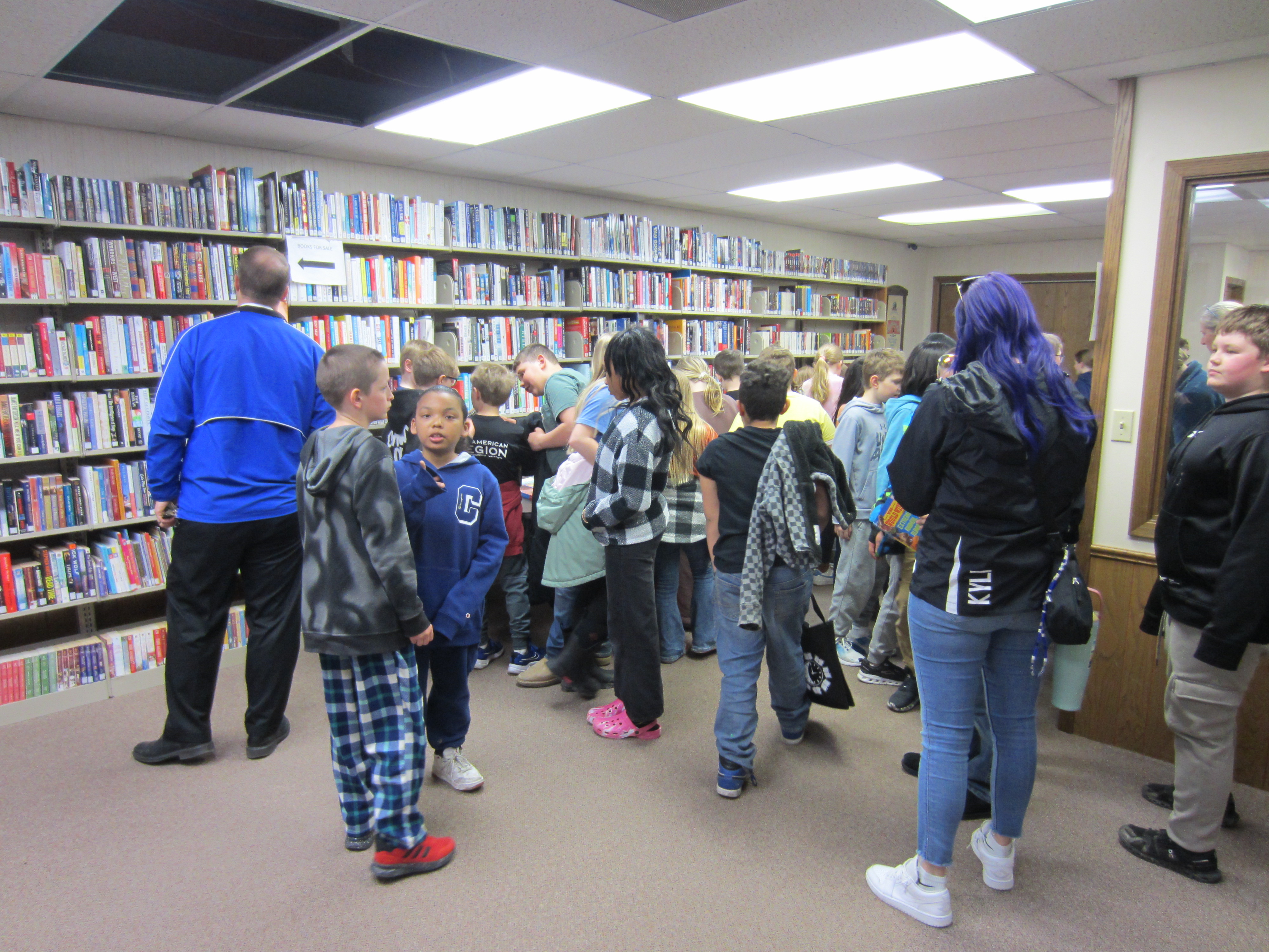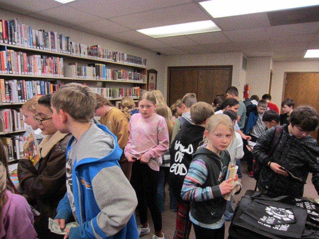 On Friday, April 10, the fourth-grade classes of Mrs. Drosdal, Mr. Hellman, and Mr. LaBar visited the Stanley Public Library in anticipation of National Library Week. The students were given a tour of the library, had an opportunity to purchase library book bags, had their choice of free books and DVDs, and registered for prizes. The students received library-themed souvenirs. The students were invited to return to the library for activities during National Library Week, April 20-24.