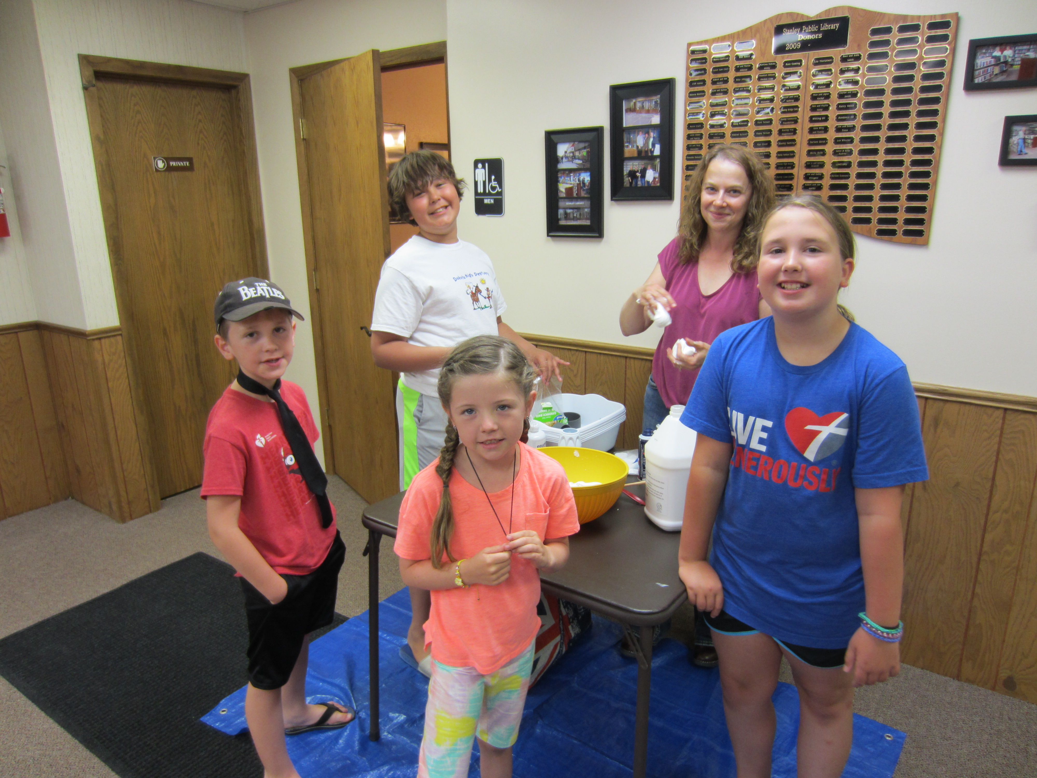 “Tales and Tails,” Stanley Public Library’s summer reading program was held Thursday, June 17 at the library. Stories were read to the participants and they created blob fish slime and lion face masks. Hedgehogs and animal bracelets were handed out as prizes and the winners of a book to take home were Omni Roise and Bea Houtkooper. There will be no program Thursday, June 24 but children who visit the library June 21-25 can pick up take-home activities related to this year’s theme. The last day of the program will be Thursday, July 1 at 2:00. Please come at 1:45 to register for prizes.