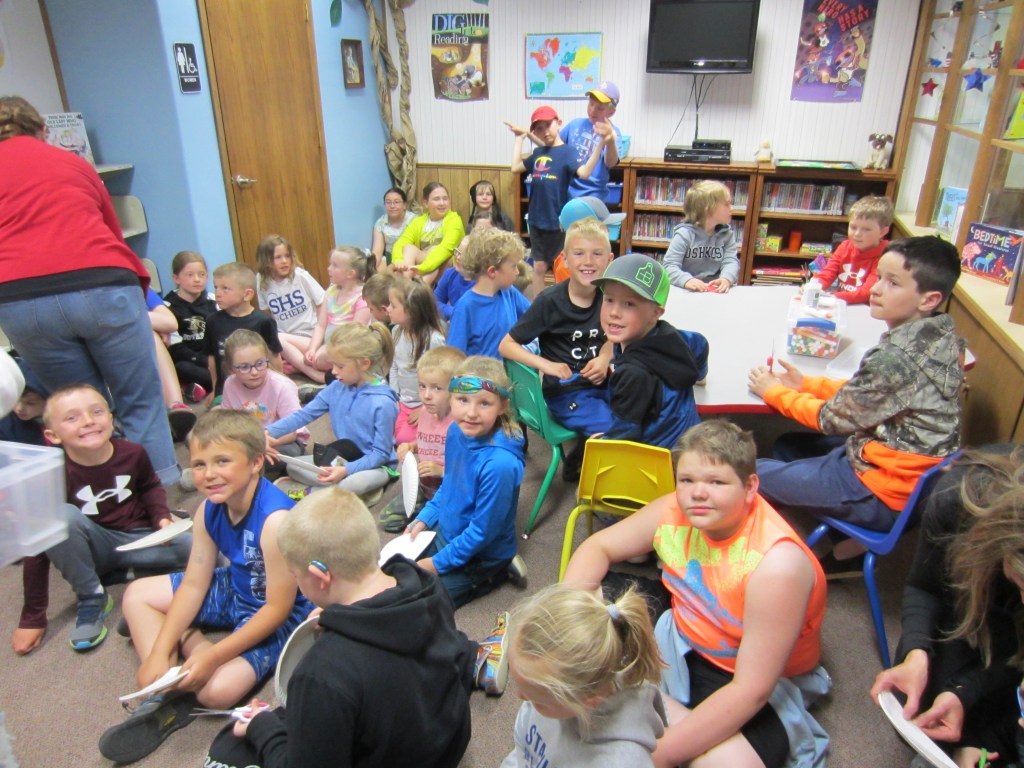 Oceans of Possibilities, Stanley Public Library’s summer reading program, was held Thursday, June 2 at the library. Stories were read to the participants, a pearl diving relay was held and pearl key chains and paper plate seashells were made. Each child who read a book in the past week got to hang a fish on the line in the window. Sea life bouncy balls and Goldfish crackers were handed out as prizes. Eli Harwood, Lynnea Harwood, Kooper Snyder and Bray Gjellstad were the winners of books to take home. Children are encouraged to read 10-30 minutes daily as part of the program. The next day of the program will be Thursday, June 9 at 2:00.