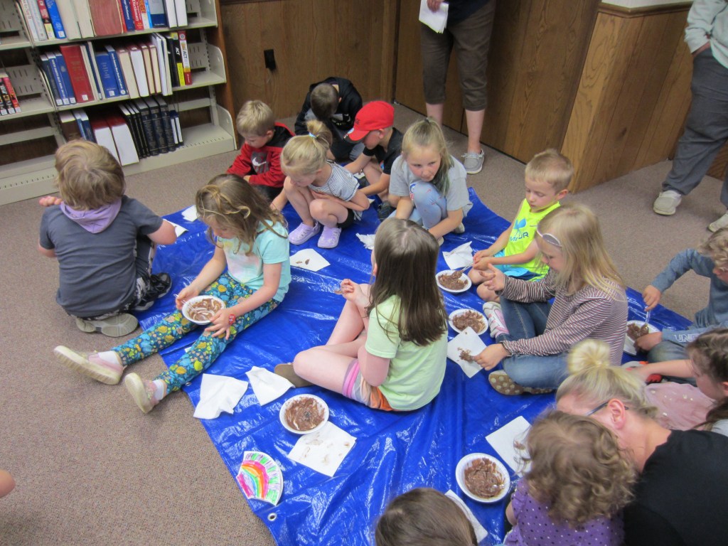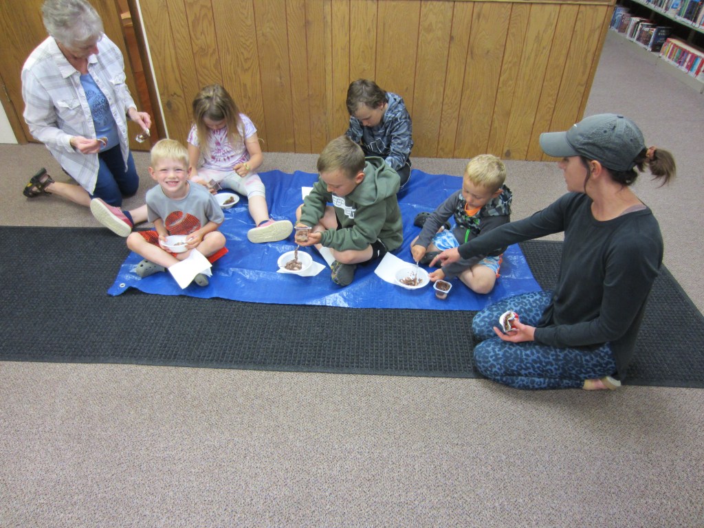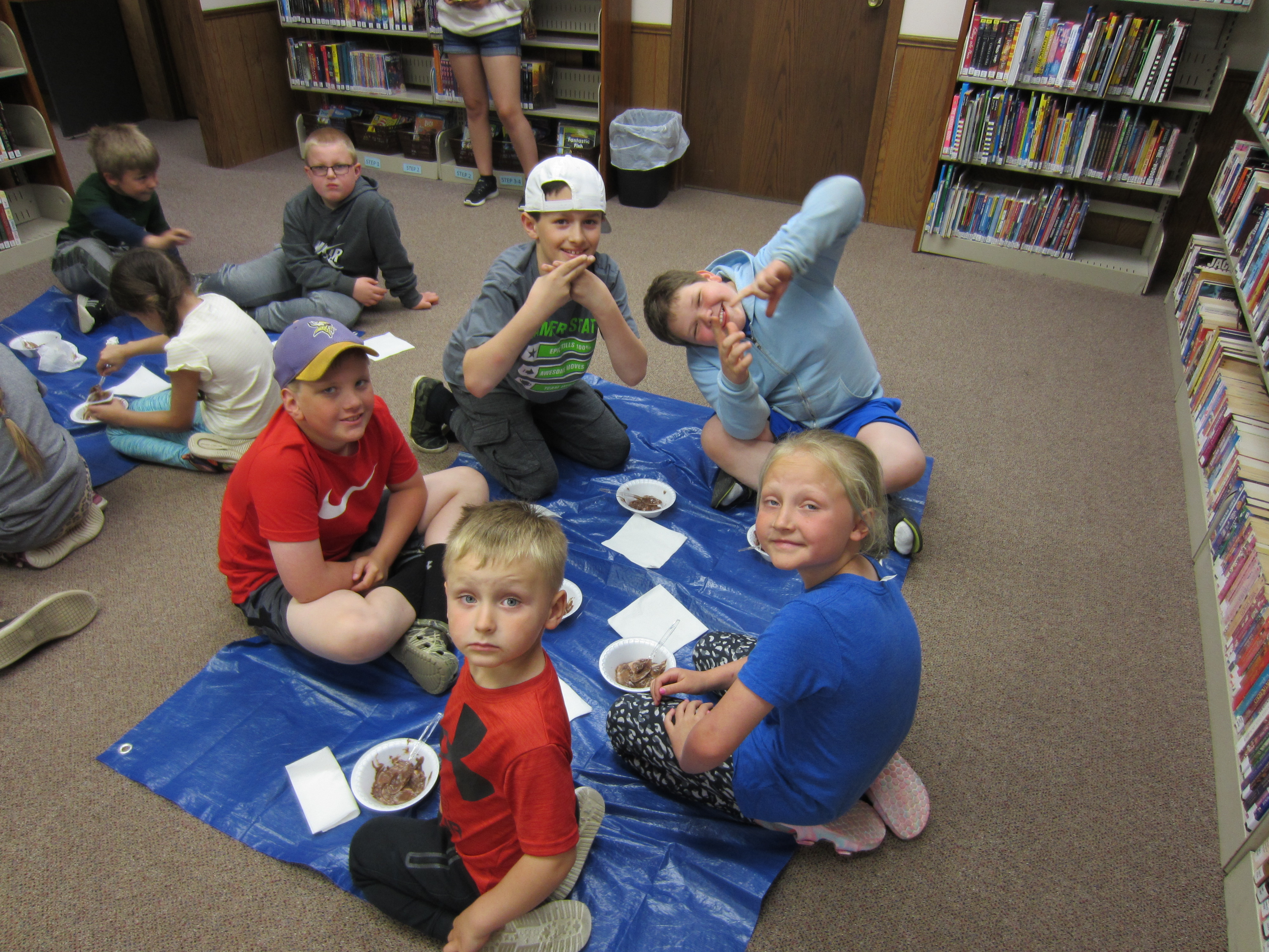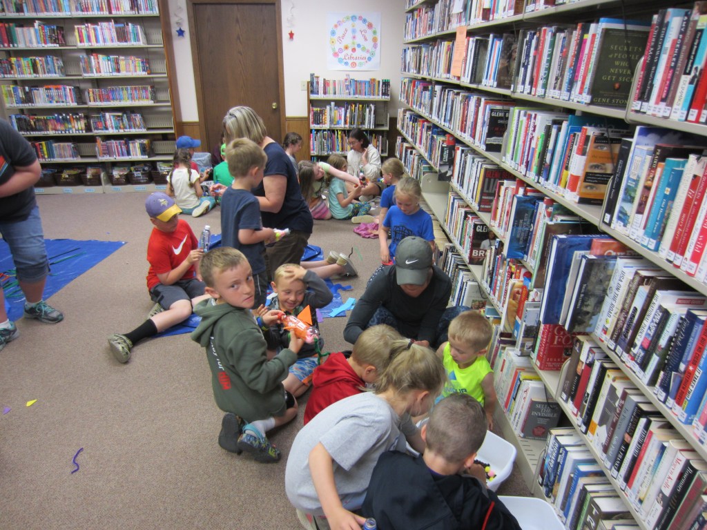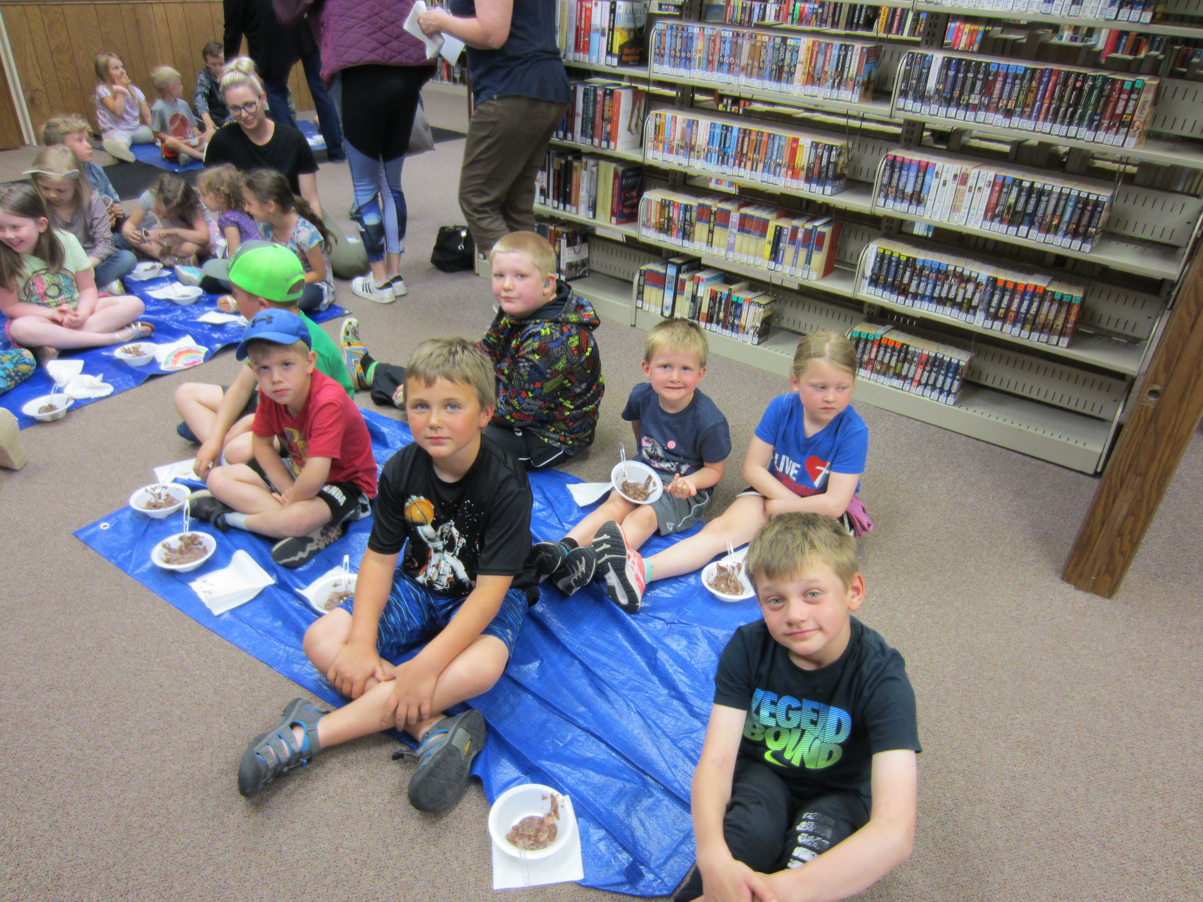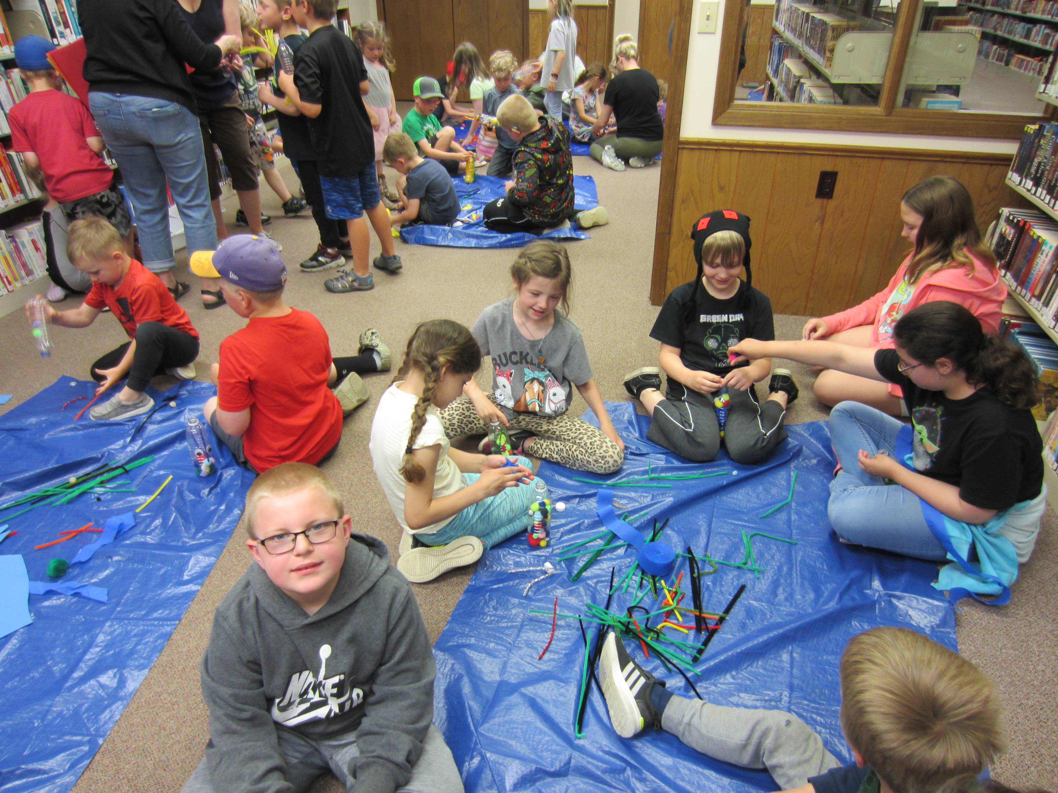 Oceans of Possibilities, Stanley Public Library’s summer reading program was held Thursday, June 9 at the library. Stories were read to the participants, an ocean pollution experiment with chocolate pudding and gummy fish was held and then sea creatures were made with recycled plastic bottles, crepe paper, googly eyes, pipe cleaners and pom poms. Fish were hung on the fishing line with titles of books that were read. Wind-up submarines, bouncy balls and shark gliders were handed out as prizes. The winners of books to take home were Dash Cossette and Eva Anderson. Children are encouraged to read 10-30 minutes as part of the program. The next day of the program will be Thursday, June 16.