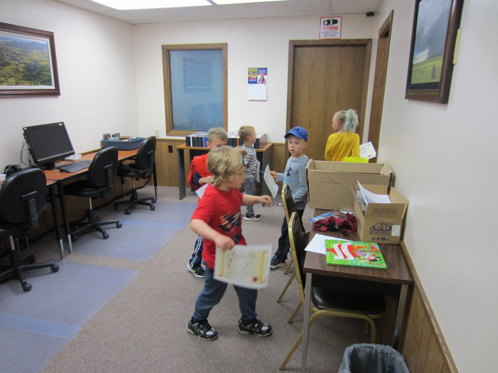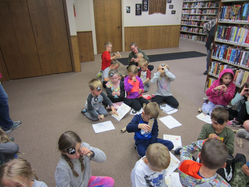 Stanley Public Library’s summer reading program, Oceans of Possibilities, was held Thursday, June 16 at the library. Fish with titles of books the children read were hung on the fishing line. Pirate stories were read and children learned to speak “pirate.” A pirate scavenger hunt was held throughout the library and children received pirate tattoos upon completion. The children also made a pirate spyglass to wrap up the day. Prizes and treats were handed out and the winners of the free book drawing were Berkley Schepp and Omni Roise. Children are encouraged to read 10-30 minutes as part of the program. The next day of the program will be Thursday, June 23 at 2:00.