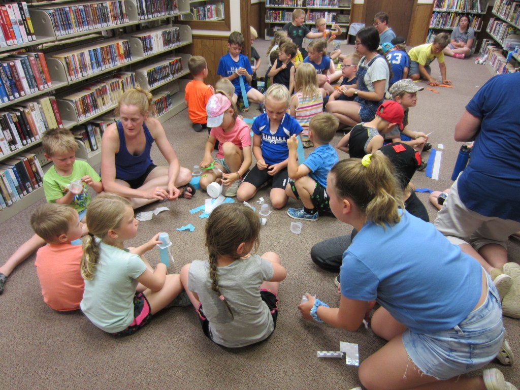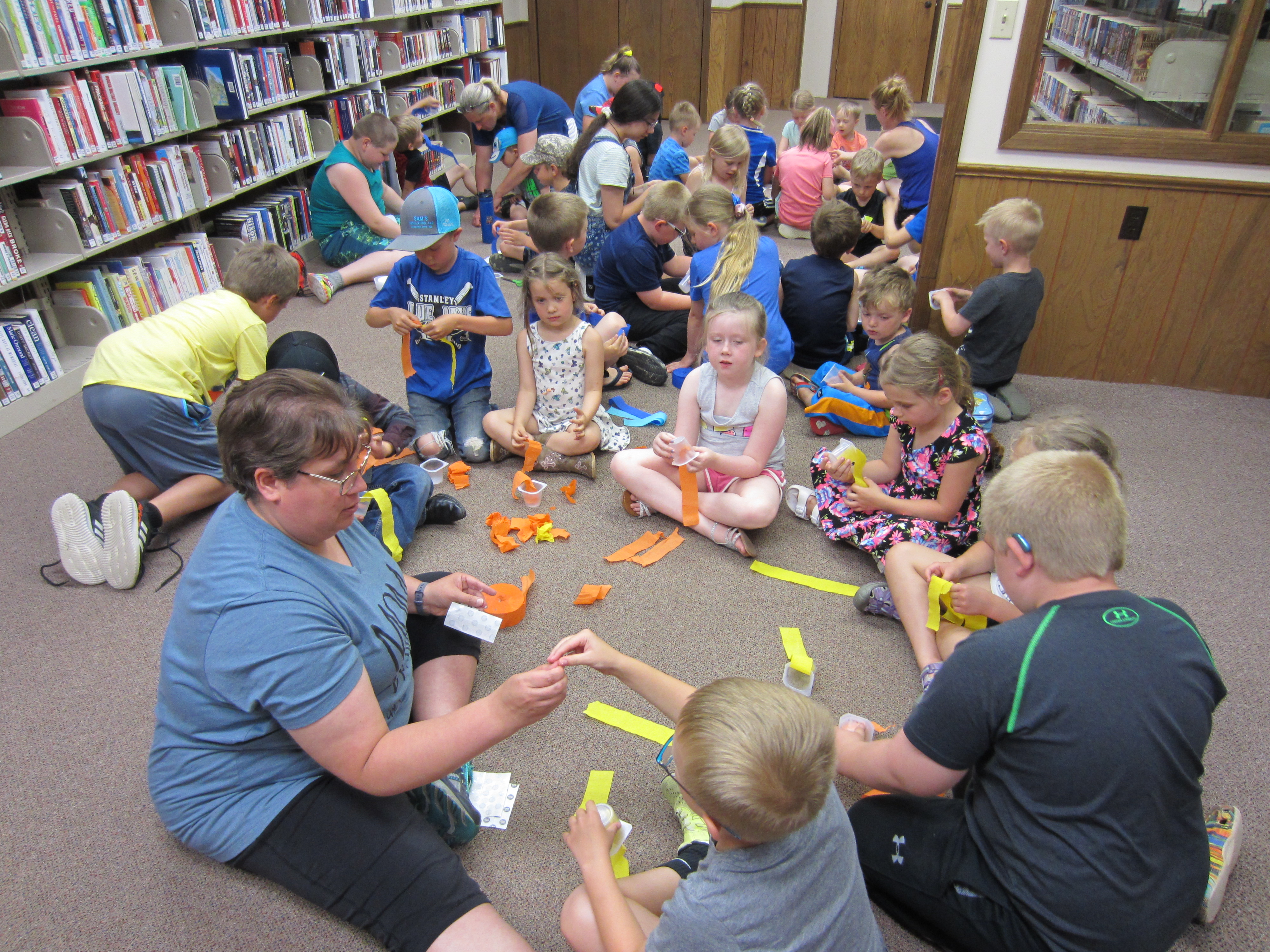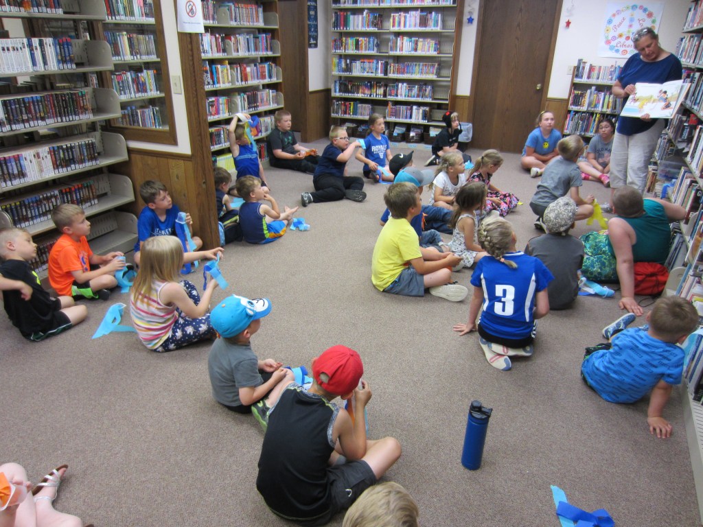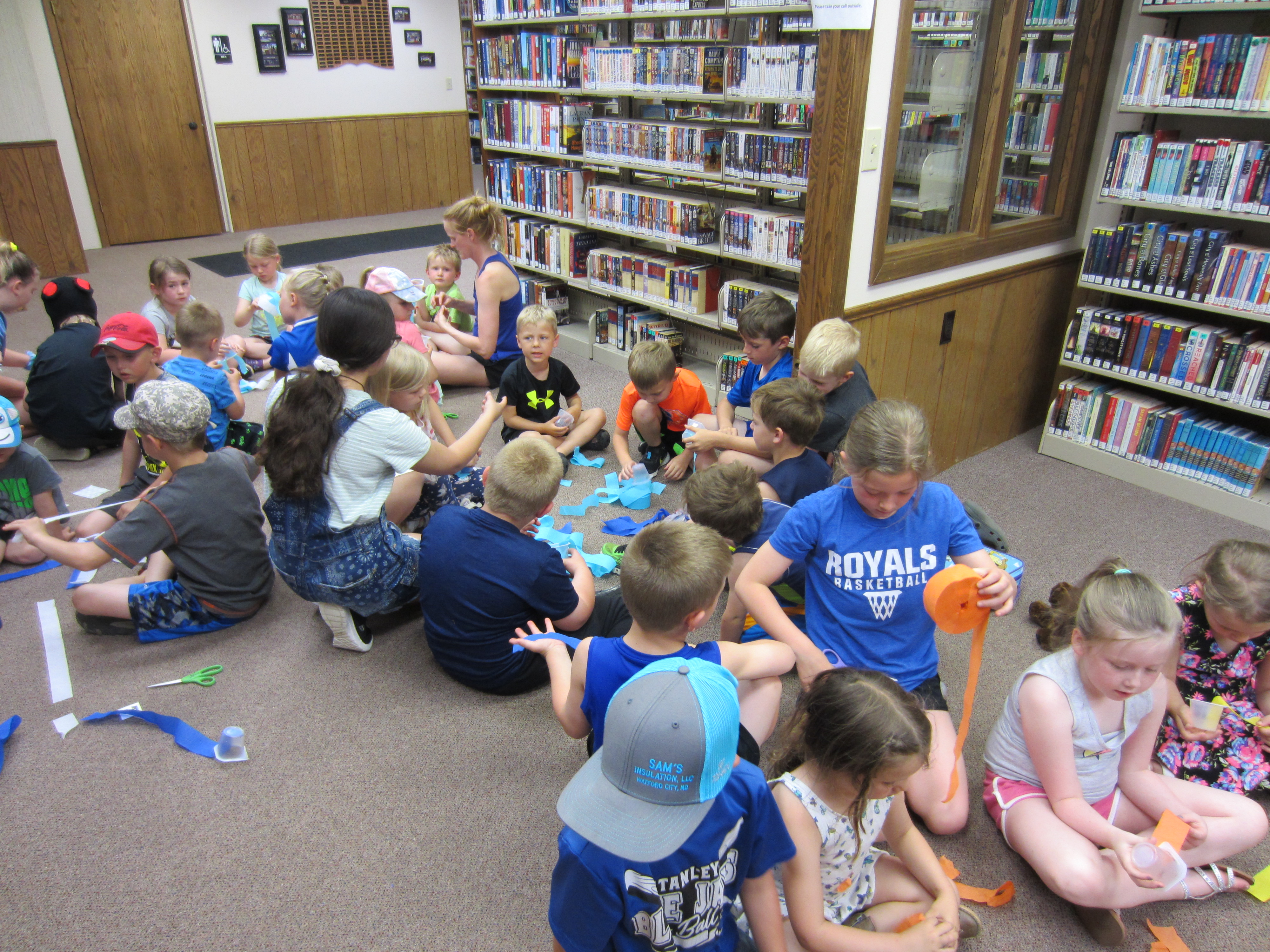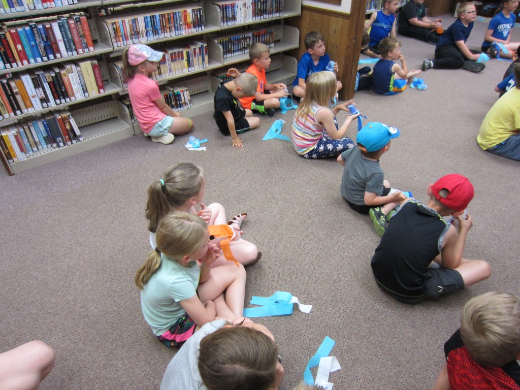 Stanley Public Library’s summer reading program, Oceans of Possibilities, was held Thursday, June 23 at the Stanley Public Library. Fish with titles of books the children read last week were hung on the fishing line. Stories were read and the children made jelly fish using recycled plastic cups and streamers. Children also made paper bag sea otters. The winners of a free book were Noah Kuster and Harrison Dupay. Sea life poppers and clown fish launchers were handed out as prizes and children are encouraged to read 10-30 minutes each day. The program will wrap up next Thursday, June 30 at 2 PM. Children should come early to register for prizes.