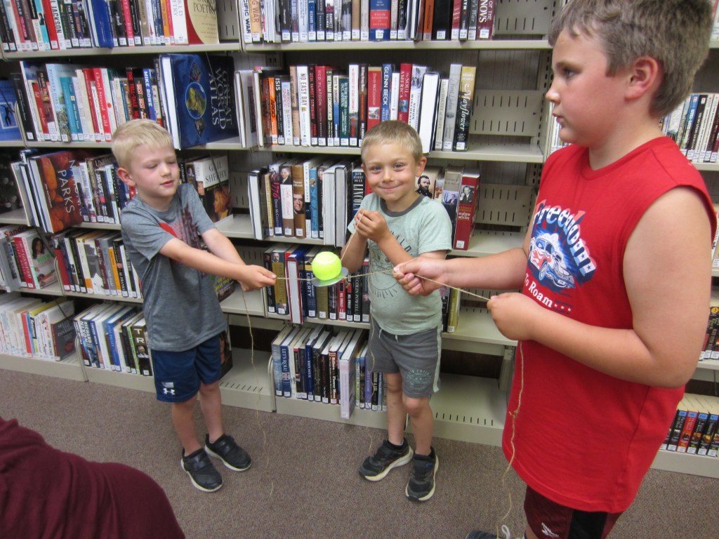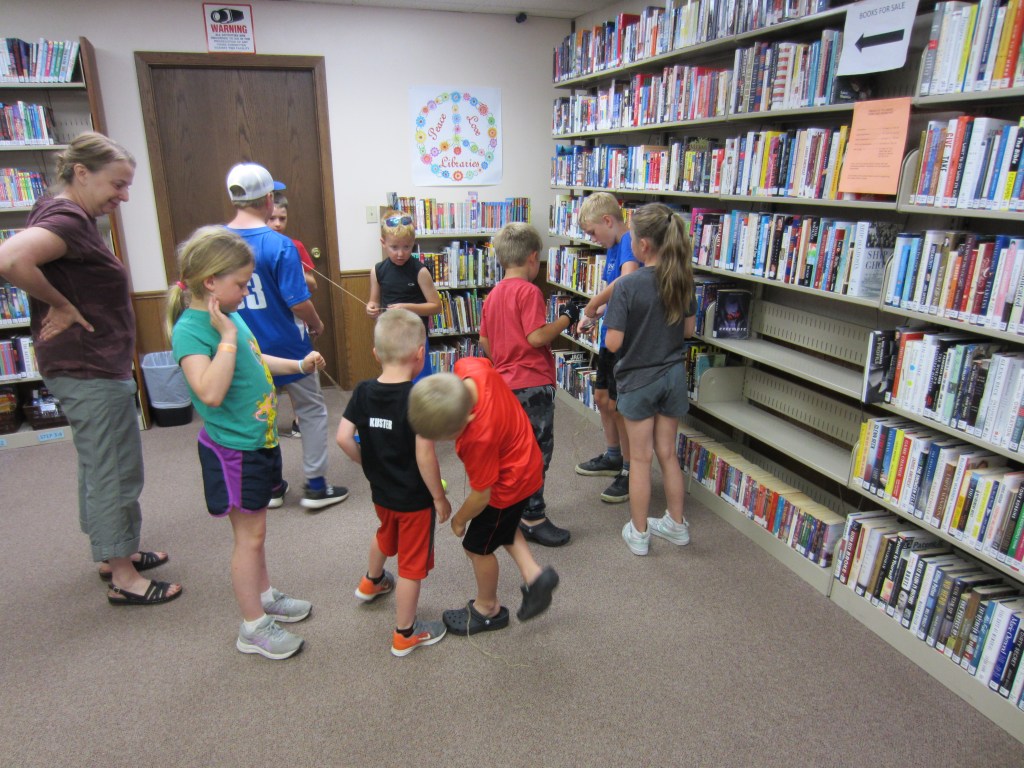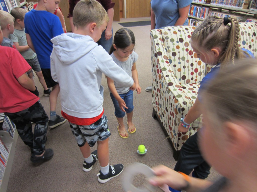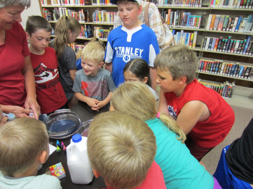 Stanley Public Library’s summer reading program, All Together Now, was held Thursday, June 8 at the library. A paper chain was created using titles of books that the participants read in the past week. Stories were read to participants and then they broke into groups to complete the Yertle the Turtle craft, do a tie-dye milk experiment and participate in a team tennis ball relay. Super putty balls and snacks were given out as prizes. Winners of a book to take home were Ida Weigel, Noah Kuster and Maverick Lidstrom. The next day of the program will be Thursday, June 15 at 2:00.