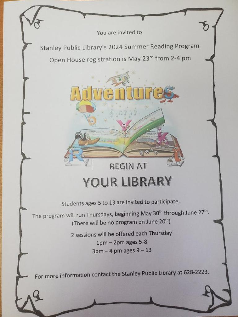 Summer Reading Coming Soon! Image | Posted on April 29, 2024 by Stanley Public Library Share: Click to email a link to a friend (Opens in new window) Email TweetLike Loading... Related