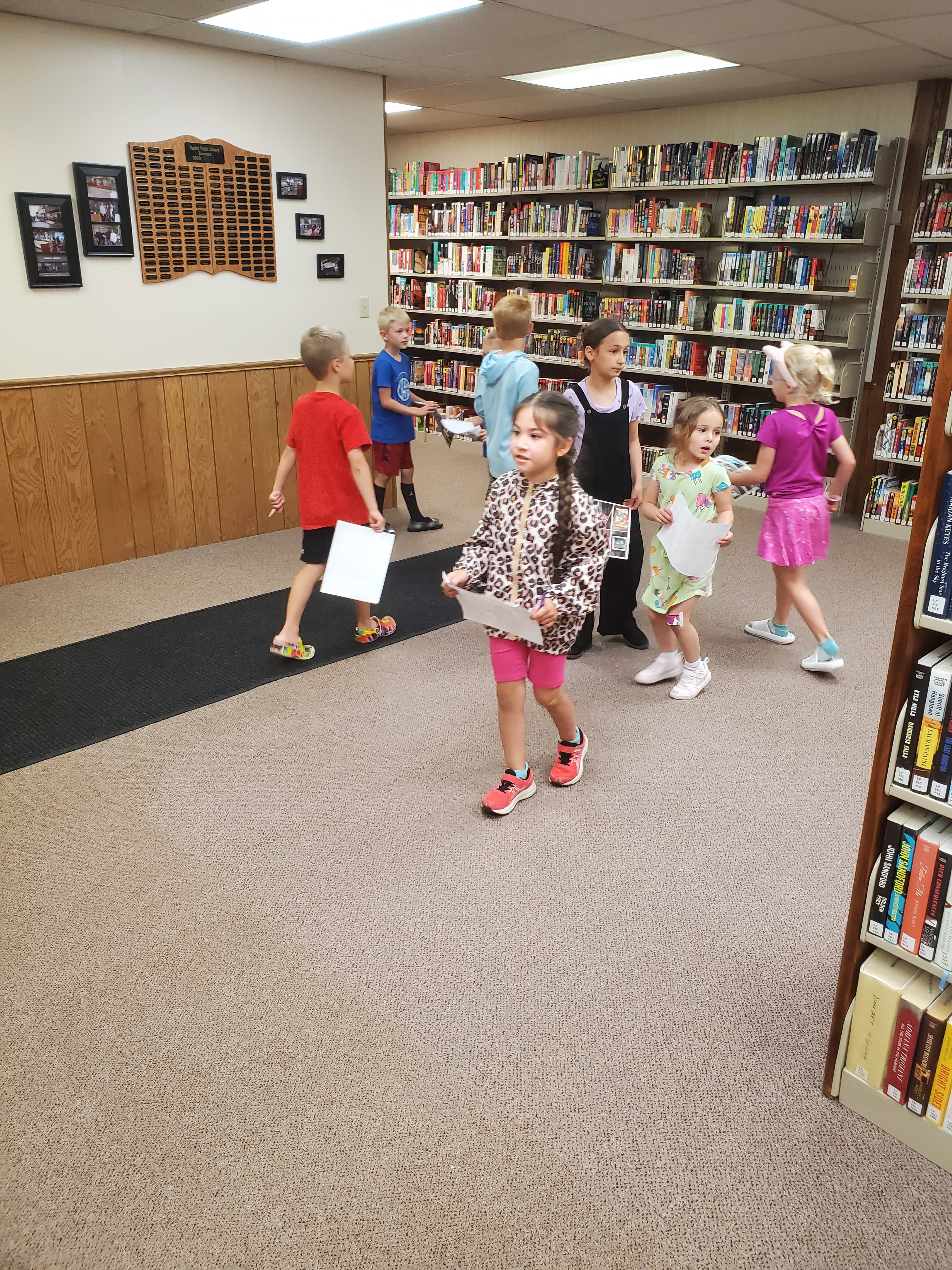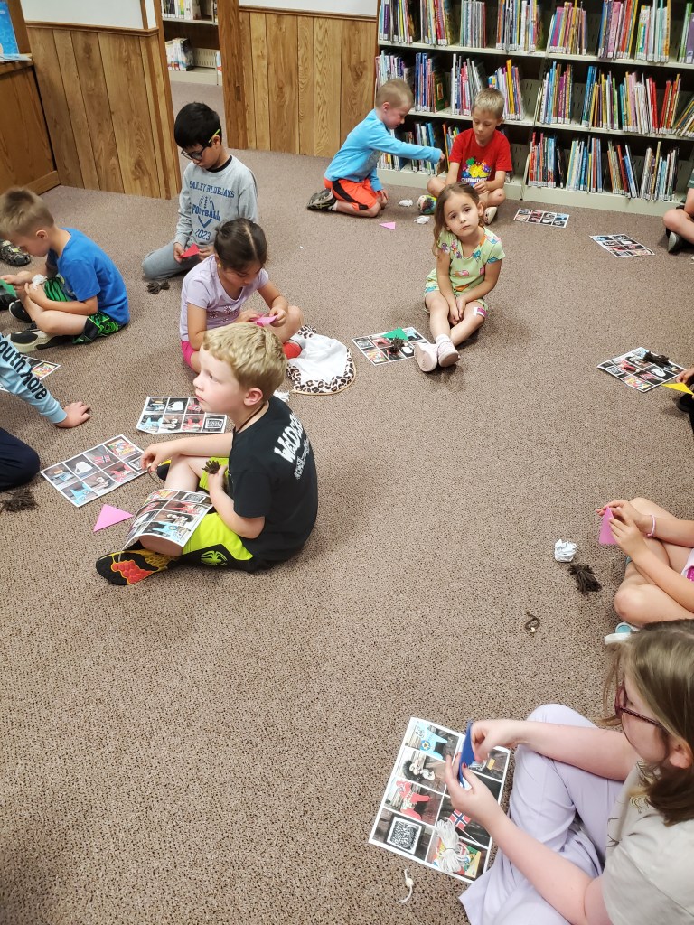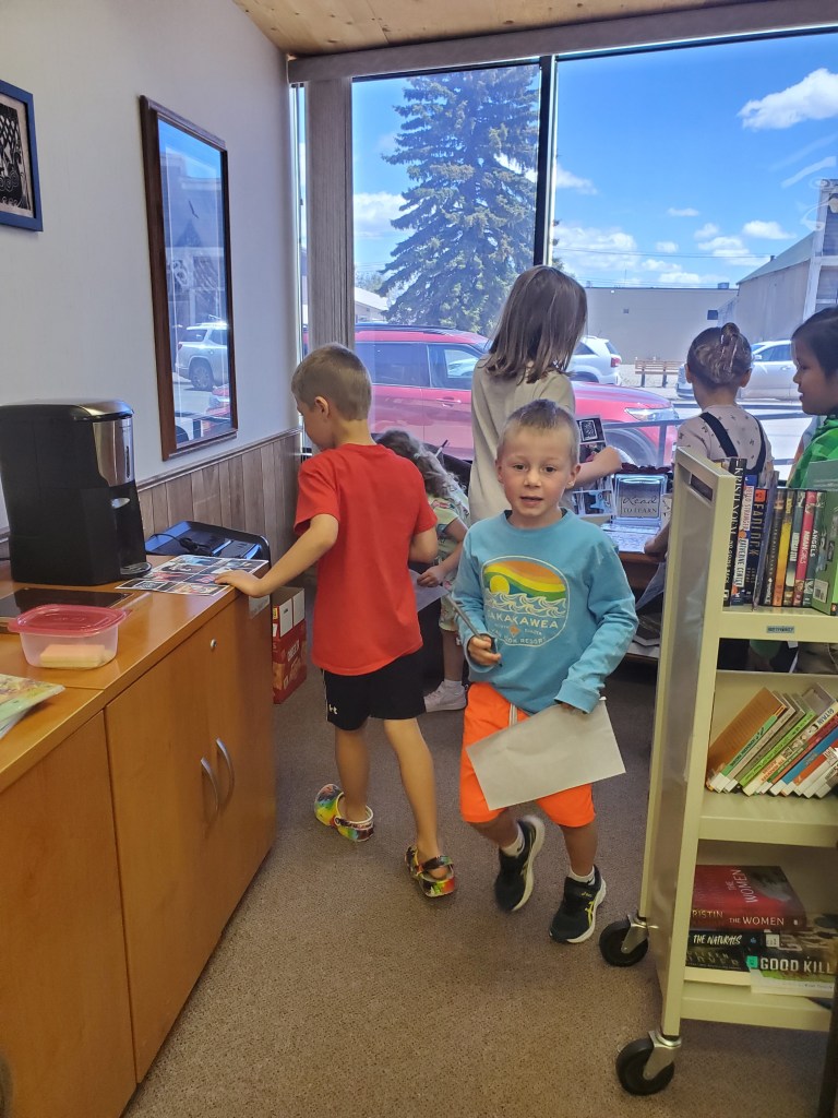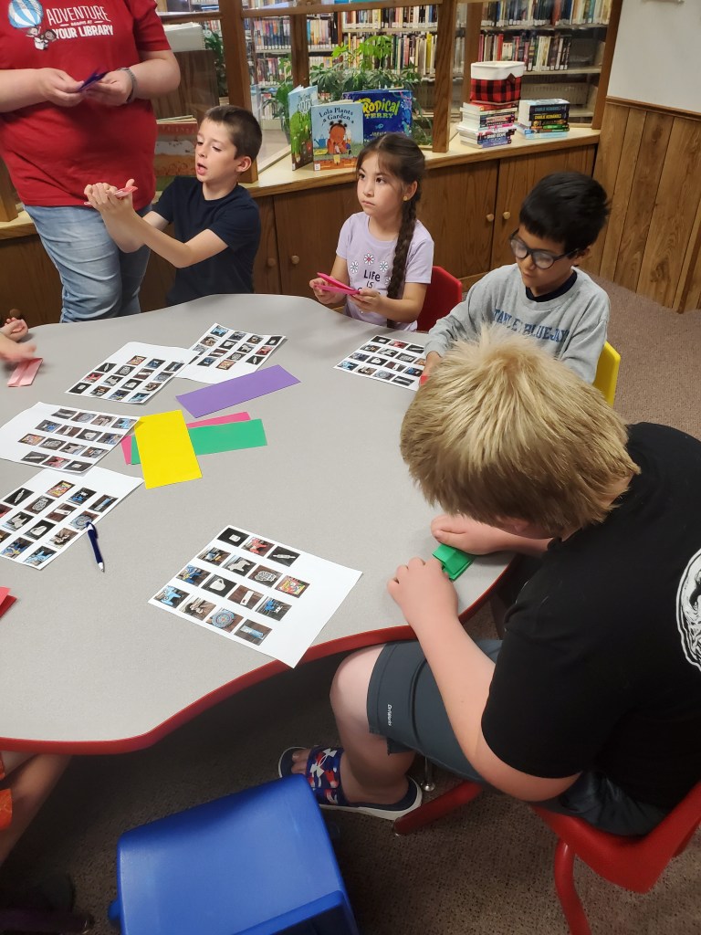 Stanley Public Library’s summer reading program, “Adventure Begins at your Library,” was held Thursday, June 13 at the library. More paper airplanes were hung, listing titles of the books the students read last week. This week, their adventure passports were stamped for Scandinavia; a story was read and then the students completed a Scandinavian scavenger hunt. They also created gnomes and origami boomerangs. Carabiners, stickers, balloons, keychain poppers and snacks were handed out. Winners of books to take home were Hayes Gustafson, Maverick Lidstrom, James Kuster and Emmy Lonier. There will be no program on Thursday, June 20. The last day of the program will be Thursday, June 27 at 1:00.