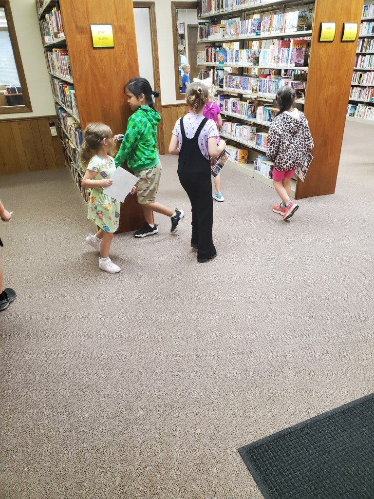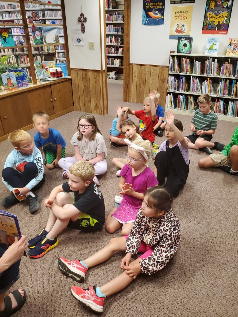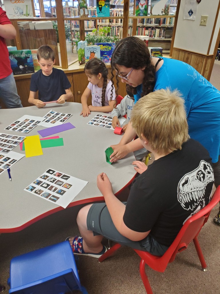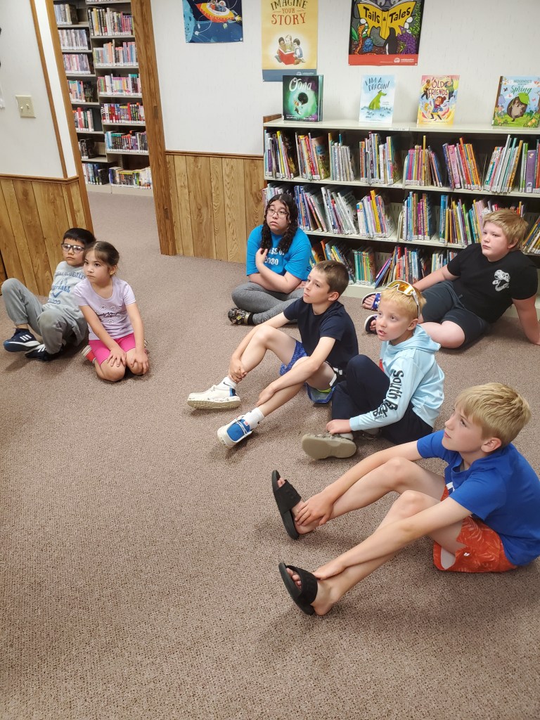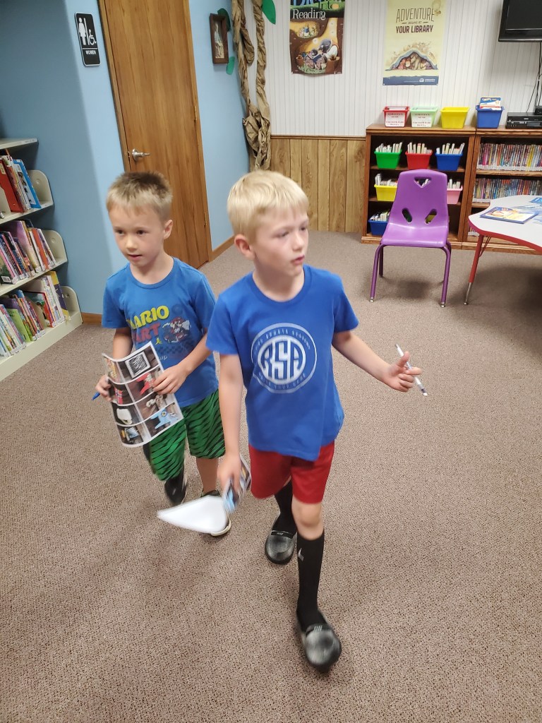 Stanley Public Library’s summer reading program, “Adventure Begins at your Library,” was held Thursday, June 13 at the library. More paper airplanes were hung, listing titles of the books the students read last week. This week, their adventure passports were stamped for Scandinavia; a story was read and then the students completed a Scandinavian scavenger hunt. They also created gnomes and origami boomerangs. Carabiners, stickers, balloons, keychain poppers and snacks were handed out. Winners of books to take home were Hayes Gustafson, Maverick Lidstrom, James Kuster and Emmy Lonier. There will be no program on Thursday, June 20. The last day of the program will be Thursday, June 27 at 1:00.
