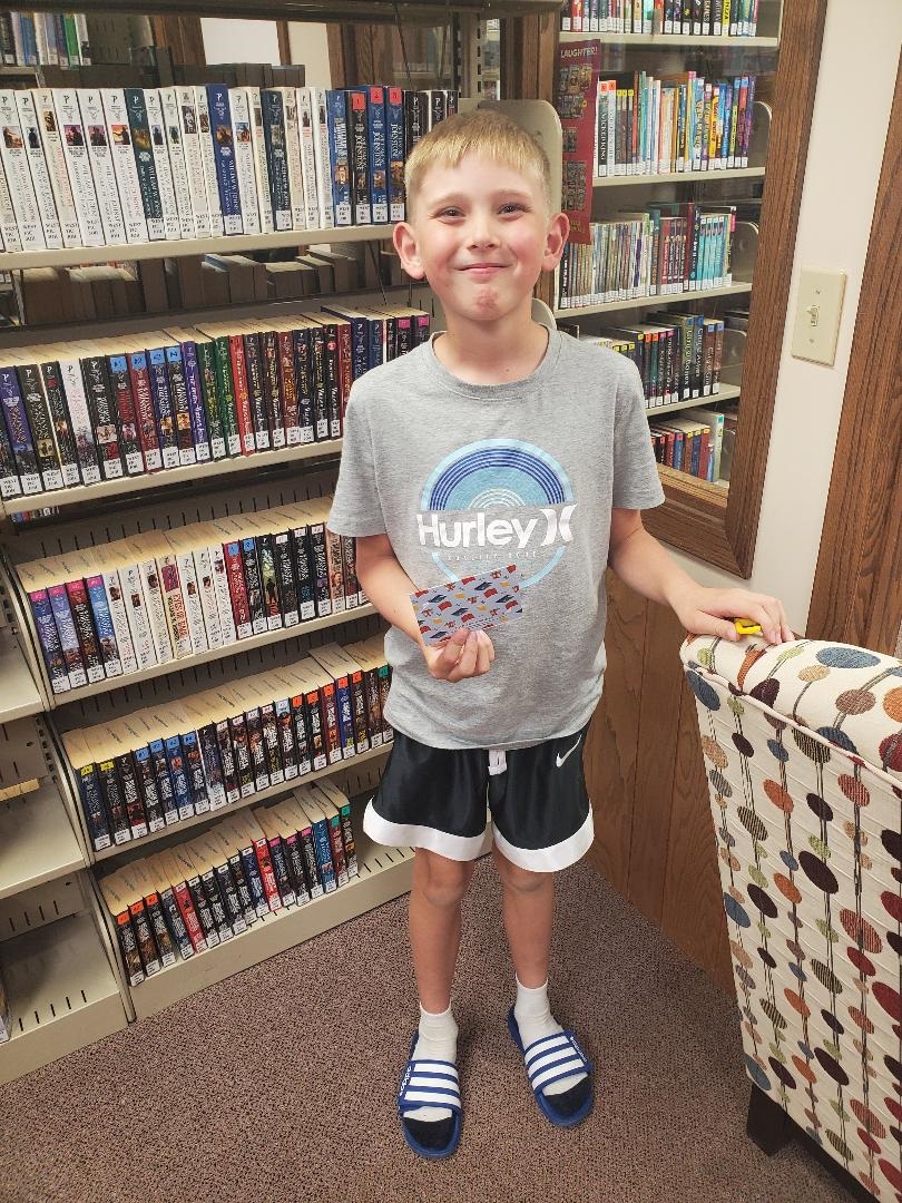 Winners of prizes donated by the Friends of the Library were Jaxton Cossette, Laynee Littlecreek, Levi Addicott, Parker Haugen, Karsyn Gustafson, Avery Jarmin, Alycia Laparra, Bode Haugen, Adeline Hunt, Greyson Addicott, Cade Schneider, Abrahm Wisthoff, Dash Cossette, Emmy Lonier, Cayson Ware, Maverick Lidstrom, James Kuster, Hayes Gustafson, Russell Williams, Malia Weigel, Amelia Hunt, Karter Kuster, Knute Roise, Arlo Cuypers, Gunnar Dazell, Carson Ploium, Ida Weigel, Omni Roise, Kali Casey and Noah Kuster.