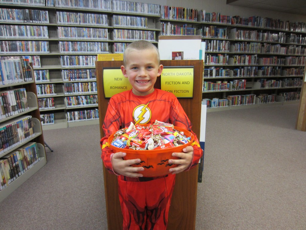 During October, the Stanley Public Library held a Creepy Candy Contest. Students were invited to look at the giant Halloween bowl and guess the number of items it contained. Jaxon Carpenter was the winner with a guess of 304, missing the exact number by only three. Congratulations to Jaxon and all who visited the library and entered the contest.