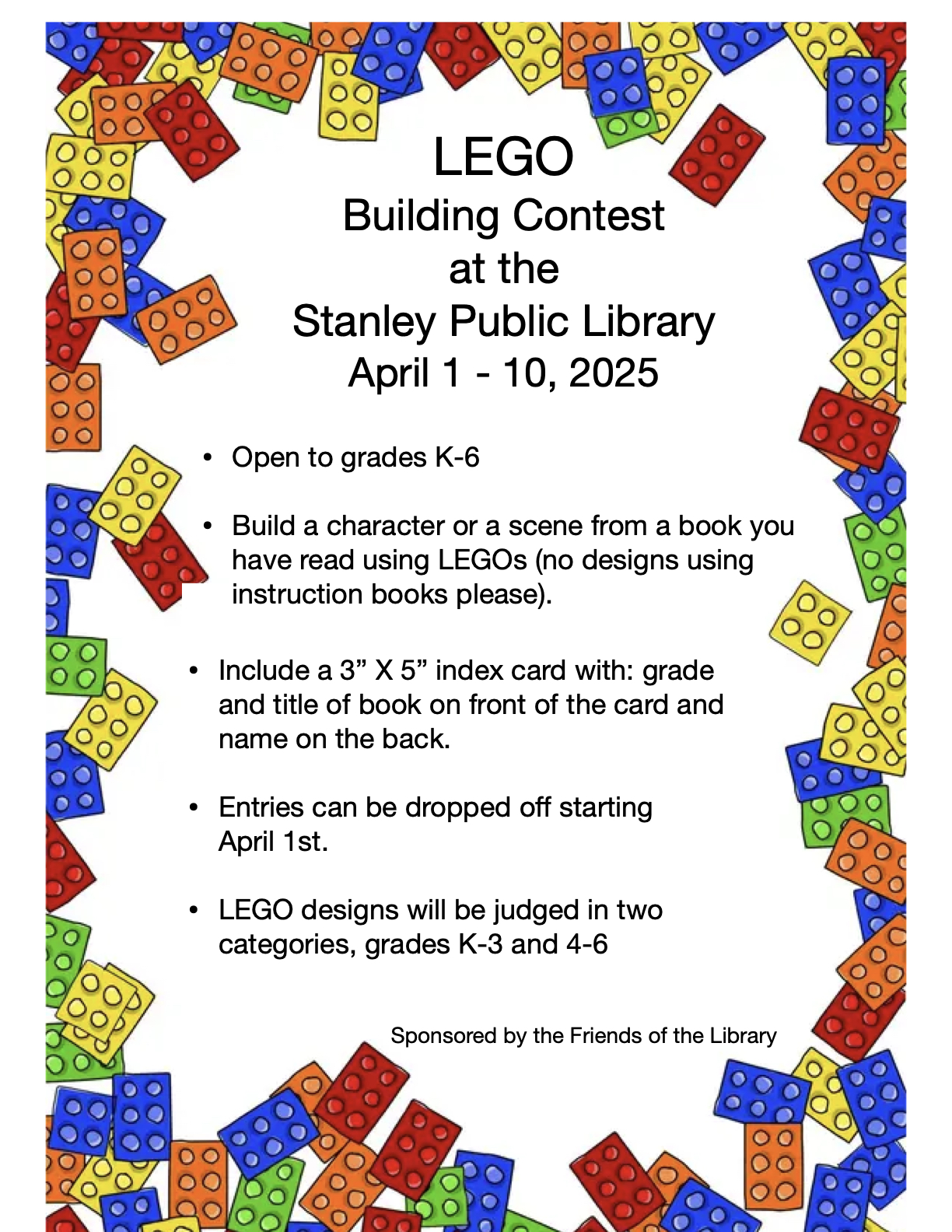 LEGO Building Contest Image | Posted on March 25, 2025 by Stanley Public Library Share: Click to email a link to a friend (Opens in new window) Email TweetLike Loading... Related