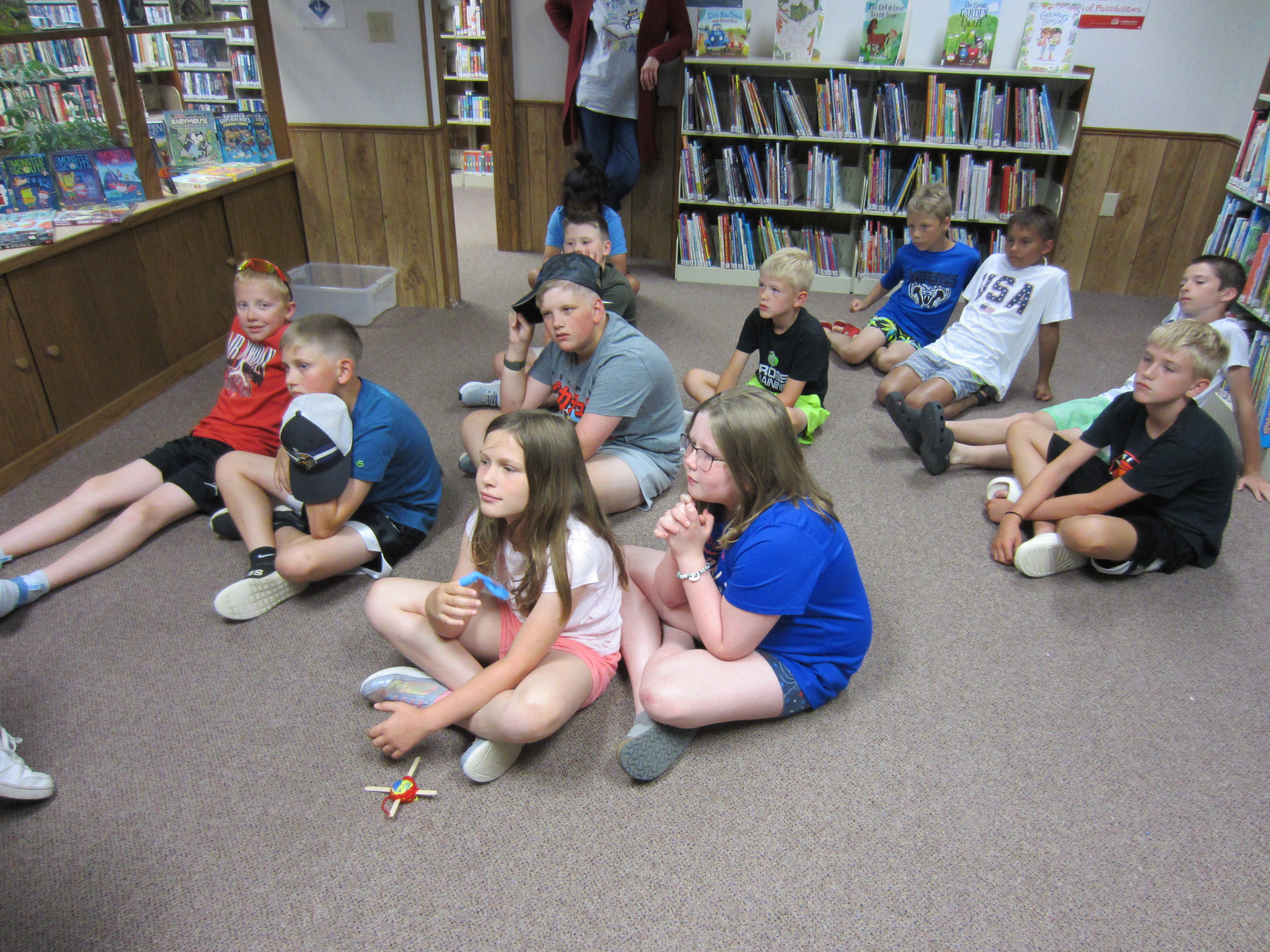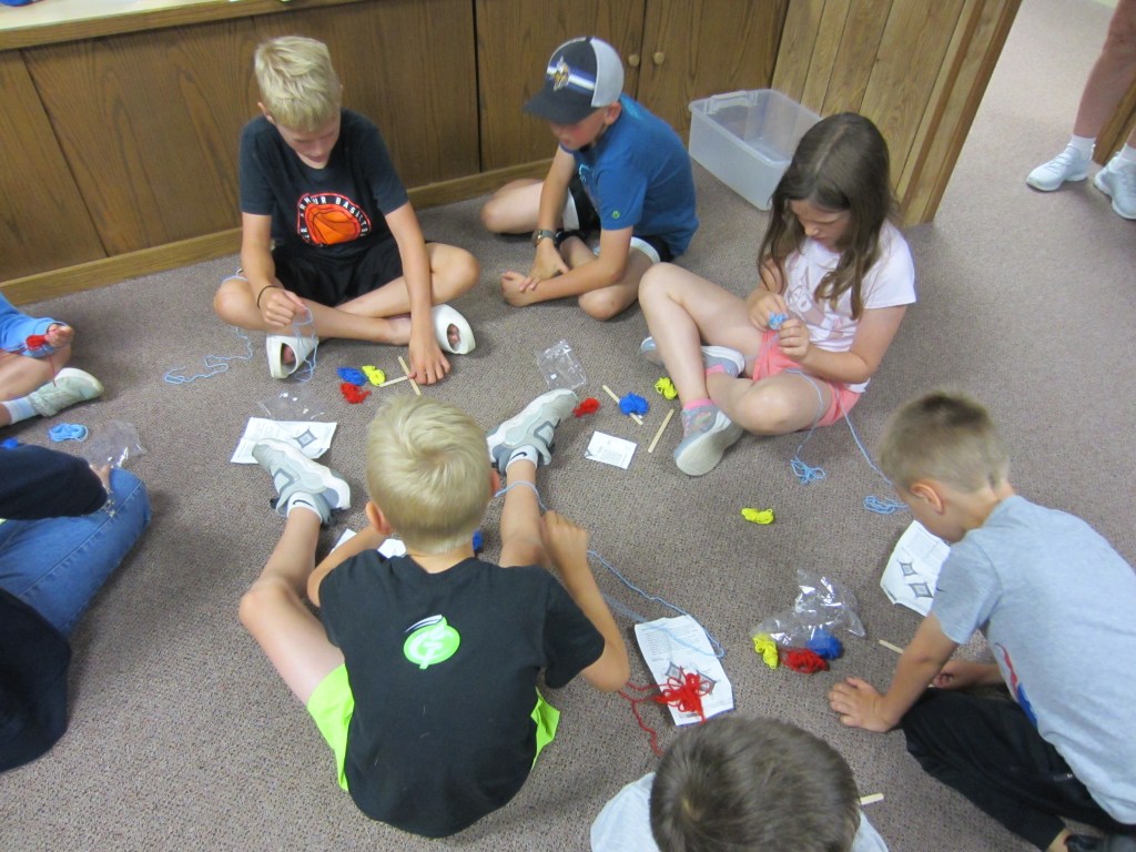 Color Our World Summer Reading Program was held Thursday, June 26 at the Stanley Public Library. A paper chain listing the titles of books that were read by the children was created and stories were read. This week’s activities featured fabric art and children created God’s eyes and woven bookmarks using yarn. Pens, pencil cases and snacks were handed out. Winners of books to take home were Dash Cossette, Ruby Evensvold, Hayes Gustafson and James Kuster. The next day of the program will be Thursday, July 17 at 1:00.