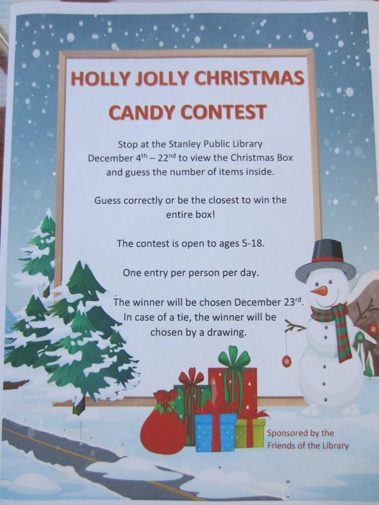 Holly Jolly Christmas Candy Contest Image | Posted on December 2, 2025 by Stanley Public Library Share: Click to email a link to a friend (Opens in new window) Email TweetLike Loading... Related